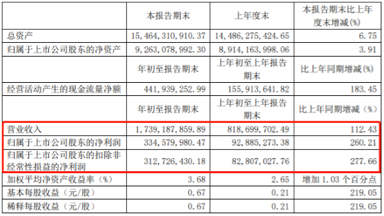 4月11日晚間,璞泰來發(fā)布業(yè)績公告稱,2021年一季度營收約17.39億元,同比增長112.43%;歸屬上市公司股東凈利潤約3.35億元,同比增長260.21%。
