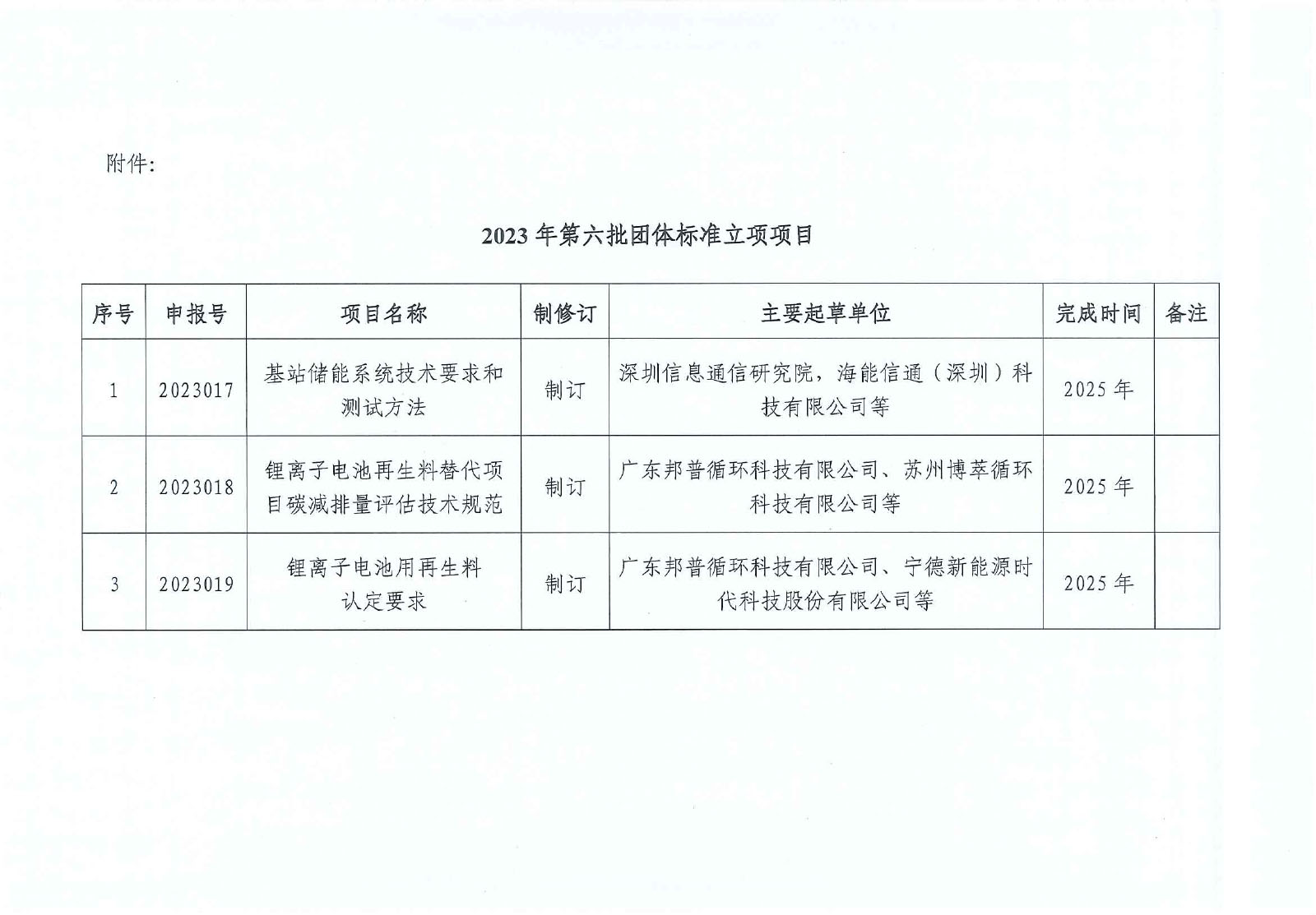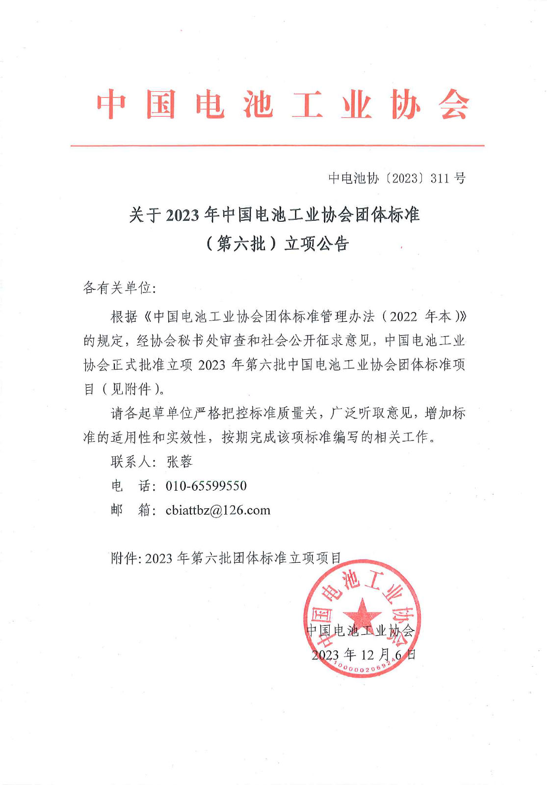 關于2023年中國電池工業(yè)協(xié)會團體標準(第六批)立項公告